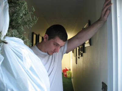 For awhile there we weren't sure it was going to fit out the door. When we broght it in it was tied up real tight with the netting.