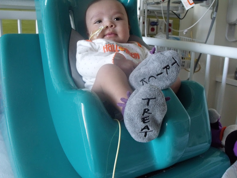 ok here's the Halloween pictures. Santi ready to trick or treat at the hospital.